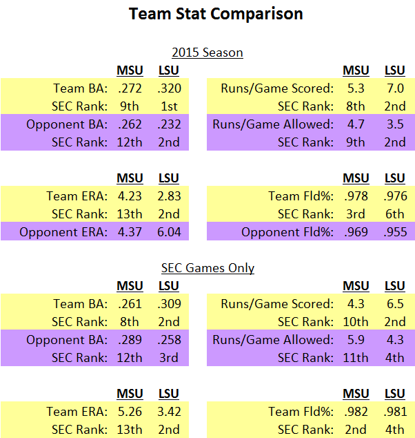 LSU takes to the road for a series with struggling Mississippi State. The Tigers have not lost any series against the Dogs under Paul Mainieri. This will be the 377th meeting between the programs since 1905 with LSU starting to catch up in the all-time series record, which currently stands at 200-178-1 in favor of MSU. LSU swept State last season in Alex Box, capping off the weekend with a 17-run performance on Sunday. This is State’s last home series, so Friday will be senior day at Dudy Noble. For the 2nd weekend in a row, all 3 games will be nationally televised.
